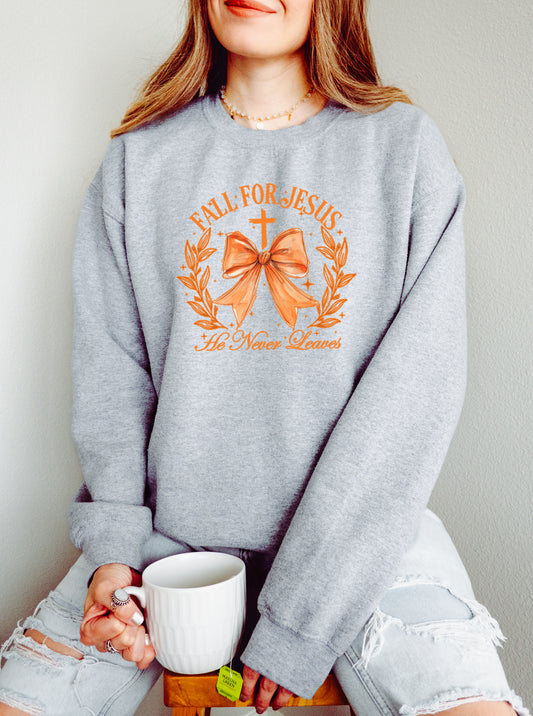 FALL FOR JESUS, HE NEVER LEAVES UNISEX SWEATSHIRT