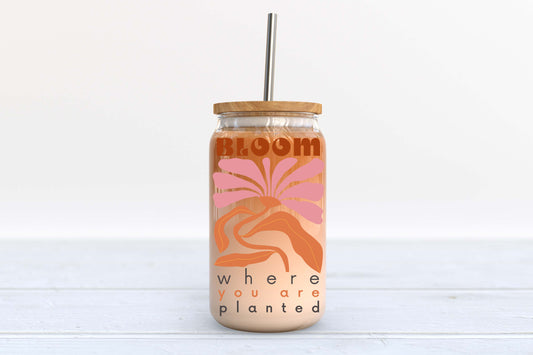 BLOOM WHERE YOU ARE PLANTED GLASS TUMBLER