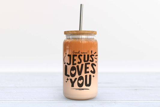 GOOD NEWS JESUS LOVES YOU GLASS TUMBLER
