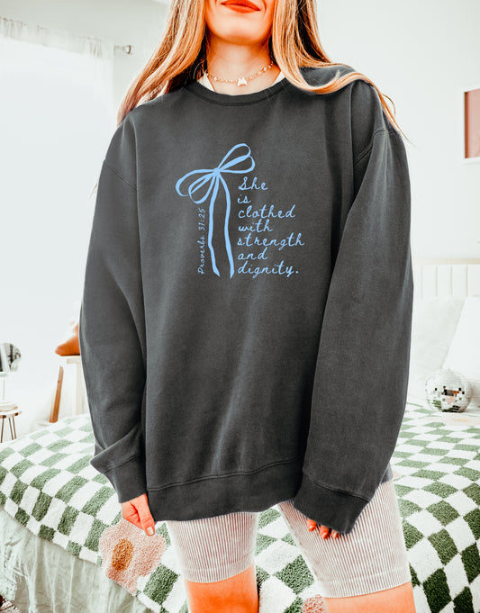 SHE IS CLOTHED WITH STRENGTH AND DIGNITY UNISEX SWEATSHIRT