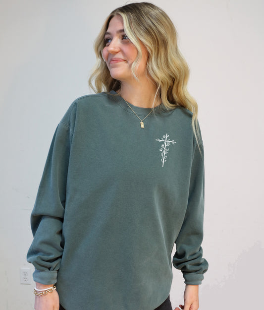 SIMPLE FLORAL CROSS UNISEX SWEATSHIRT