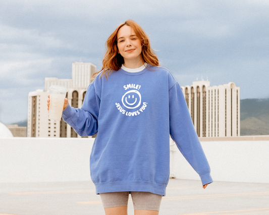 SMILE JESUS LOVES YOU! UNISEX SWEATSHIRT