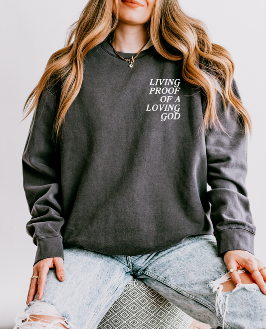 LIVING PROOF OF A LOVING GOD UNISEX SWEATSHIRT
