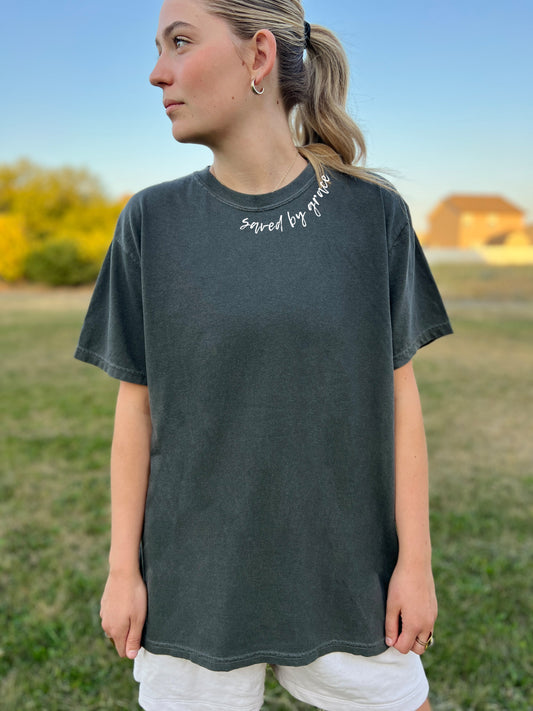 SAVED BY GRACE AROUND THE NECK UNISEX TEE
