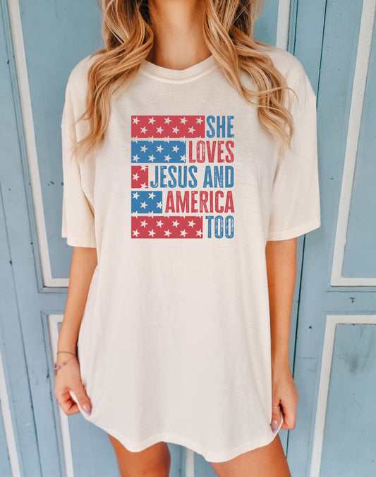 SHE LOVES JESUS AND AMERICA TOO UNISEX TEE
