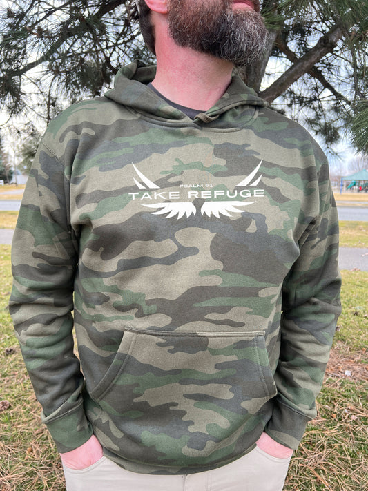 TAKE REFUGE UNISEX CAMO HOODIE