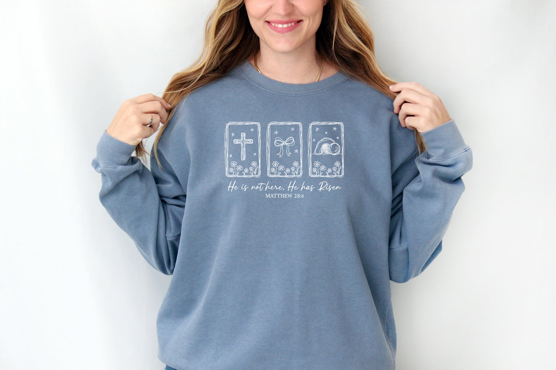 HE IS NOT HERE, HE IS RISEN (HAND-DRAWN) UNISEX SWEATSHIRT