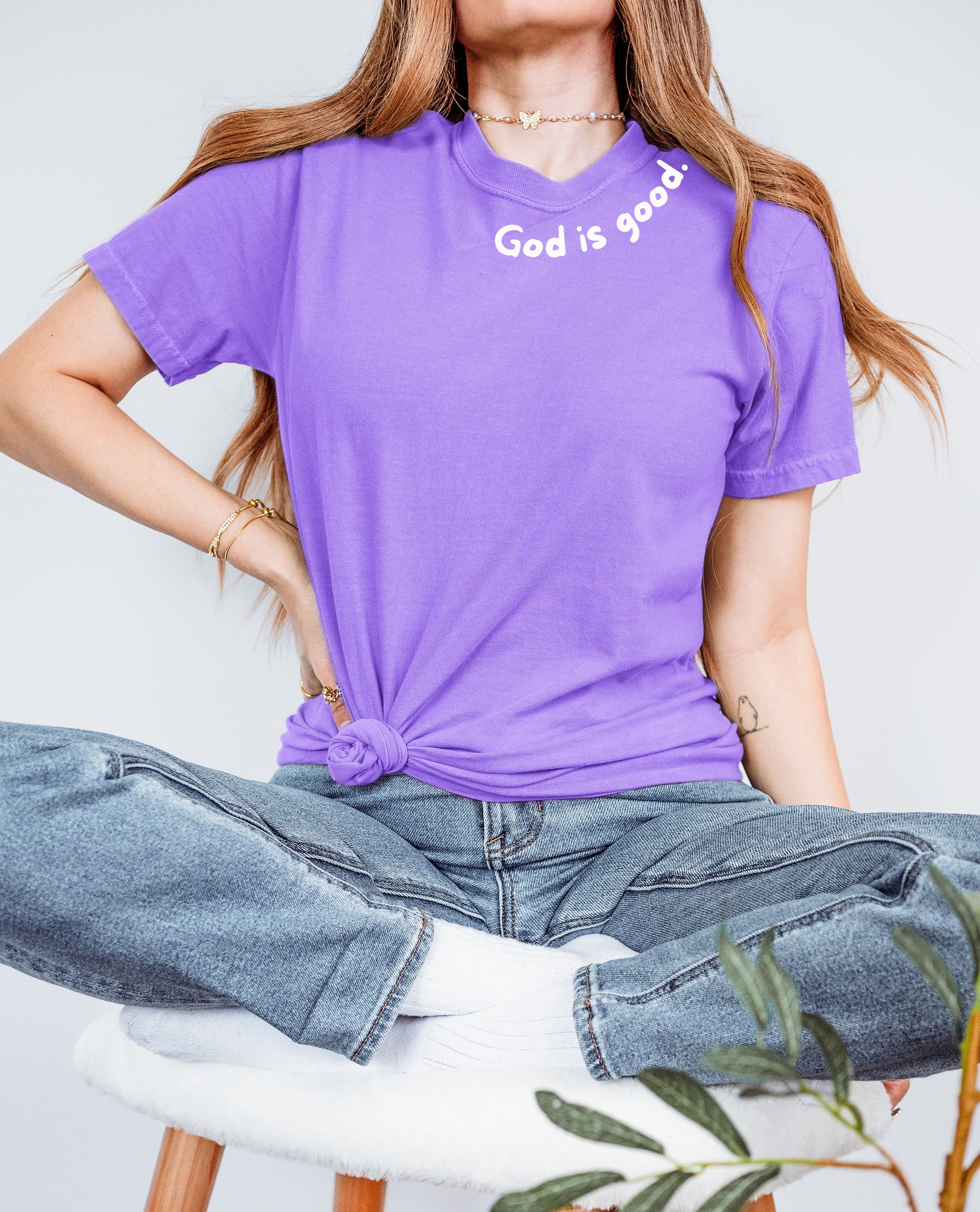 GOD IS GOOD AROUND THE NECK - SIZE SMALL IN VIOLET