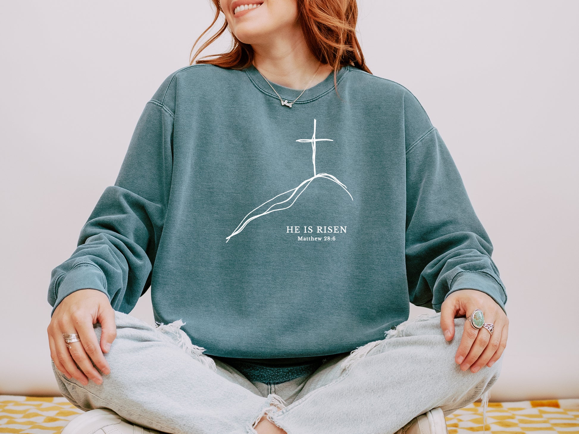 EASTER MINIMALIST CROSS ON A HILL UNISEX SWEATSHIRT