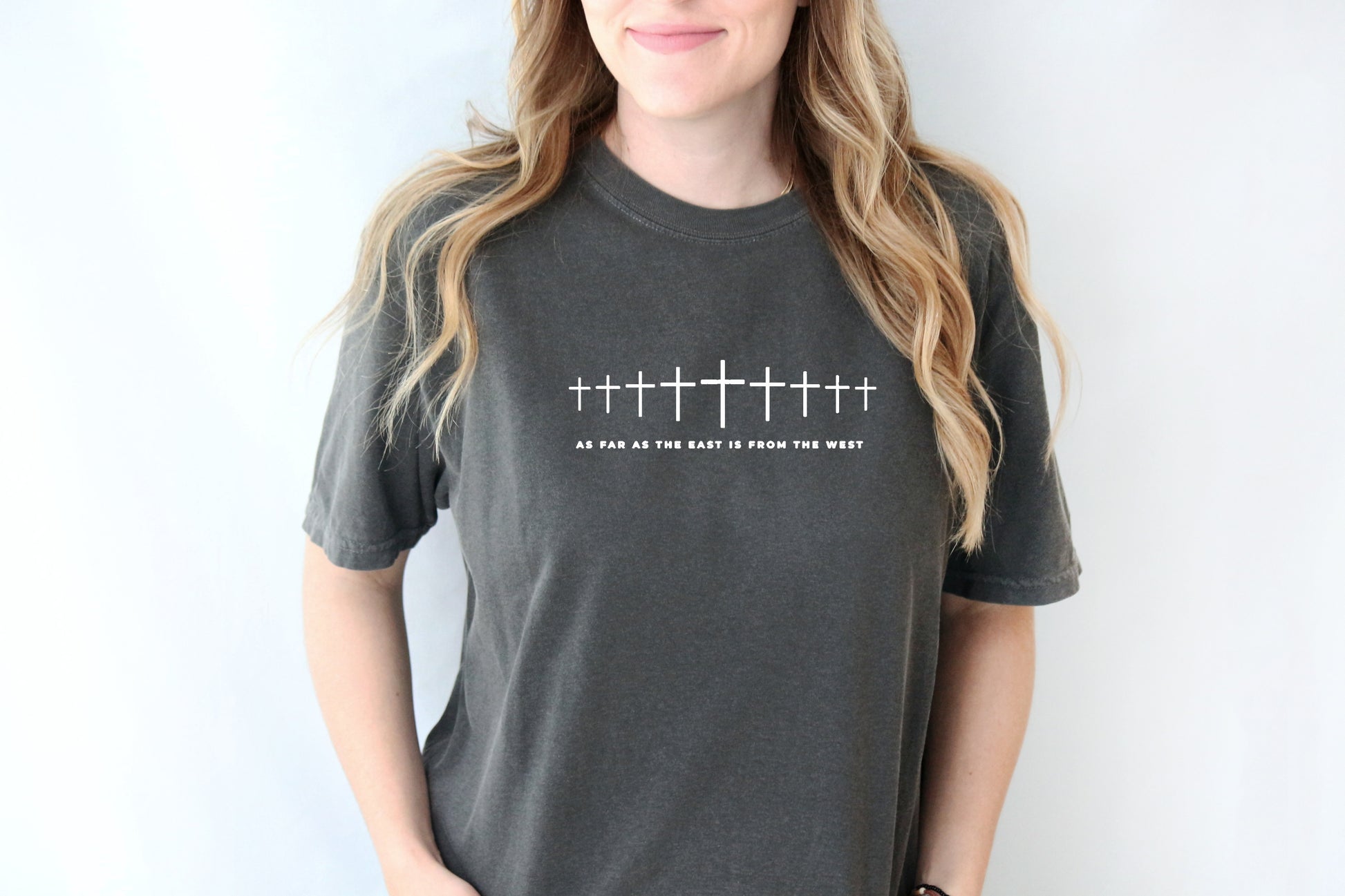 AS FAR AS THE EAST IS FROM THE WEST UNISEX TEE